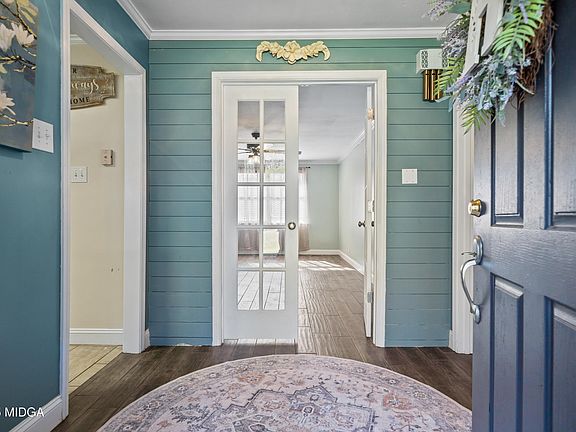 Come and visit this charming ranch home in Gray, GA! It is close to Macon and Gray with Forsyth being only a quick drive. Don't worry about too much traffic, it is located on the dead end of a quiet street. When entering the home, you'll see a warm, welcoming foyer. The kitchen has tile floors and so much counter space! There are also cabinets galore for storage. There are large windows that allow in natural light, brightening the whole room. There are nice, new countertops with a built in bar for quick meals. There is a handy walk in pantry with good lighting and space saving pocket doors. The stunning brick arched entryway is one of my favorite things and it leads to the spacious livingroom. You will have enough space for your whole family to make memories. There is a fireplace with a very useful wood box that is loaded from outside and accessed from inside beside the fireplace. The dining room has lovely wood grain tile and is just begging for a gathering. There are two sets of french doors, one set leading to the livingroom and the other leading to the entryway. There are four ample bedrooms, including an impressive master bedroom with space for nice sized furniture without feeling crowded. The awesome master bathroom has been recently updated with lovely tile and has a nice area with his counter space for all of your makeup and hair needs. It has his and her closets plus a toiletry closet to keep things tidy. There is also a deep tub for days you need to relax and soak in a bubble bath. The spare bathroom has also been recently updated with beautiful tile work and the perfect wooden vanity. Before exiting the home to the carport, you see the newly updated laundry room with lots of counter space, custom cabinet space for organizing and granite countertops.