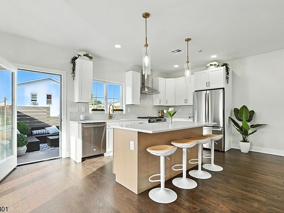 Brand New Modern Luxury " Single Family Home " No HOA! This new 3-level, 2,627 sq. ft. home combines modern design with everyday comfort. Andersen High Performance windows, 9' ceilings, and hardwood floors enhance the open main level, featuring a designer kitchen with quartz countertops and full quartz backsplash, 2-tone cabinetry w/ center island, and all GE stainless steel appliances. The kitchen flows into the dining and living areas, creating a great space for both entertaining and daily living. The primary suite offers a spacious bathroom with double sinks, a glass-enclosed walk-in shower, and a generous closets. You will also find a 2nd bedroom, full guest bath, washer/dryer and flexible office or den. The 1st level includes a recreation/media room, powder room, and full laundry room equipped with full size GE Washer/Dryer & sink. A private 14' x 12' deck, extensive professional landscaping with sod and shade trees creates a beautiful setting. Exterior includes Stone, Hardie Plank siding, paver driveway, and insulated garage with opener. Parking accommodates 3 vehicles. Additional highlights include designer Kohler fixtures and lighting, 2-zone central A/C, natural gas heat, and fire sprinkler on all floors. With no HOA fees, a 10-year homeowner warranty, and a location minutes from NYC transit, dining, shops, and top-rated schools, this home delivers style, function, and long-term value.