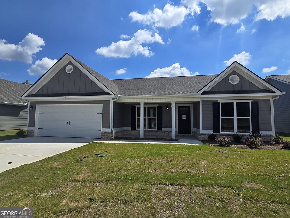 Craftsman style ranch, 4 bedroom, 2 1/2 bath, concrete siding with brick accent, patio, open floor plan, kitchen has custom white cabinets, pantry, granite kitchen countertops, wood burning brick accent fireplace, separate dining area, master suite has walk in closet, master bath has separate shower and garden tub, double vanity, 2 car garage, Dogwood Plan, home is under complete. SELLER IS OFFERING WITH FULL PRICE OFFER AND USE OF THE PREFERRED LENDER $10000 credit towards closing costs, interest rate buydown FHA 5.5 Fixed rate for 30 years, 6ft wooden rear yard privacy fence, 2 inch faux blinds, garage door opener, master shower door, side/ side refrigerator to qualifying buyers. Preferred lender $10000 1st time home buyer credit program available to qualifying buyers