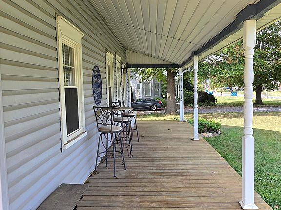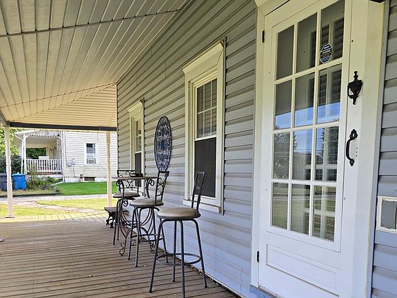 Charming historic farmhouse on sidewalk street has large, covered wrap around porch with enclosed Sunroom on the side. The home has been beautifully updated and features 4 Bedrooms 1.5 Baths, large eat in kitchen which opens to the Sunroom. Living/Family room is large, has hardwood floors with an adjacent room off to the side which could be used as a home office, playroom, or any other needs you have. Powder room and laundry/mudroom conveniently located on the first floor. All 4 Bedrooms are on the second floor with an updated hall bath with tub. Dogs considered with pet deposit. No cats please. Garage area at the end of the drive is tenant occupied.