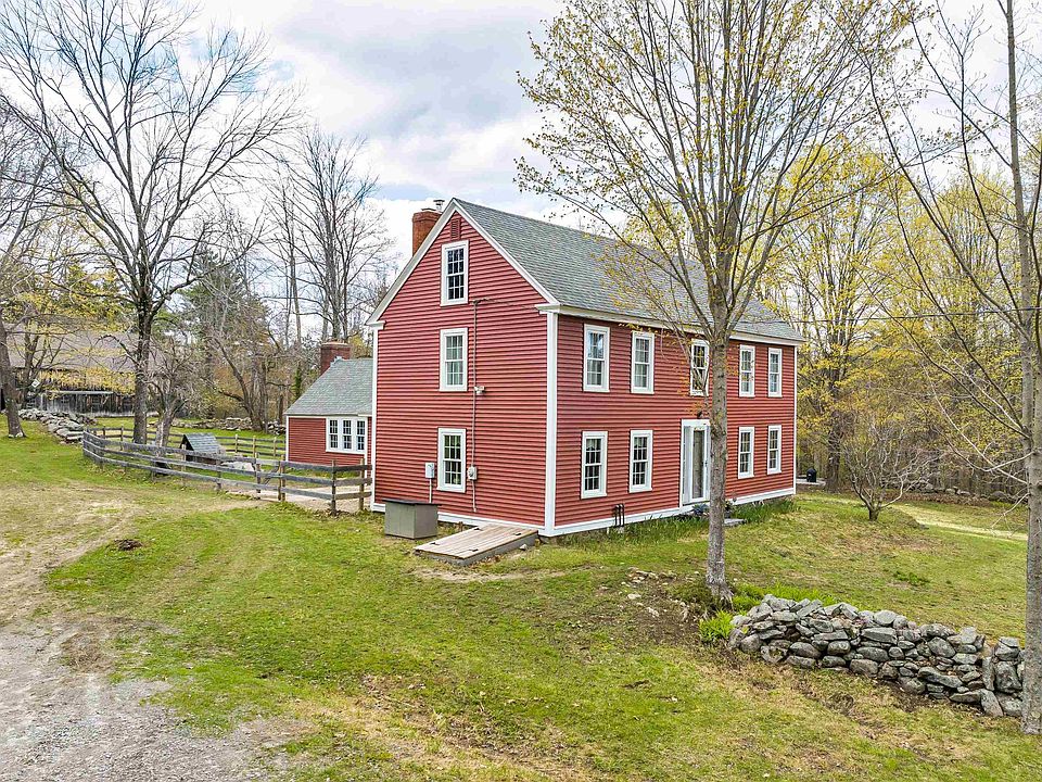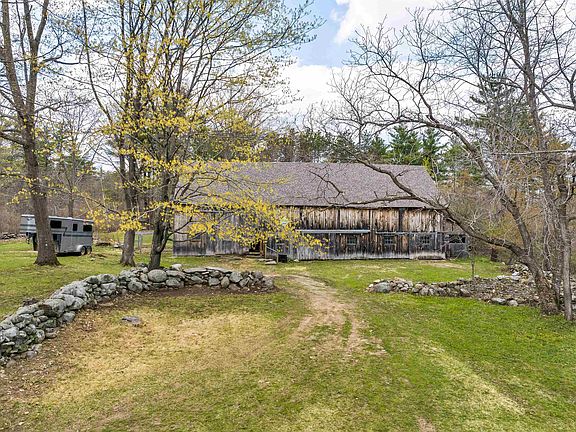 This is an opportunity to own substantial acreage in southern New Hampshire! Timbering Hill Farm is located in sought-after New Boston and is centered around a charming c.1821 colonial farmhouse that is a thoughtful blend of original features, including gorgeous wide pine floors, four panel doors, and today’s expected updates. In 2020, a custom country kitchen with oodles of cherry cabinetry, stainless appliances, honed granite & cherry countertops, a new mudroom and a new 1st floor bath w/shower were completed to compliment the first floor. Rooms are generous in size, including a 28’ great room with a massive stone fireplace. Upstairs are two big front-to-back bedrooms and a substantially renovated full bath. A bonus is the walk-up 3rd floor, ready for an extra room, if needed. Add new thermal windows, new siding on house and garage in 2019, and you'll find this beauty move-in ready. Outbuildings include a P&B barn with updated wiring in conduit, a frost-free hydrant, and fencing set up for a variety of livestock. Horses and goats use it now. There's a detached o'sized 2-car garage and a charming little cottage or studio w/ 3/4 bath, sitting area, BR and covered porch. This parcel is conserved, is farm-friendly and abuts other permanently protected lands for hours of exploration on the trails. 3.7 Acres are not under an easement. Owner may post the land against public access per conservation deed. Come home to a quiet, simpler way of life.