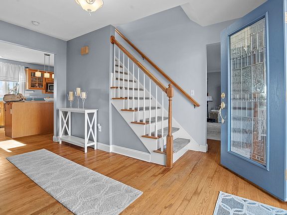 Spacious Colonial with Screened Porch & Versatile Walk-Out Lower Level! Welcome to this beautiful, expanded Colonial offering room for everyone and endless possibilities! The sun-filled eat-in kitchen features a center island, pantry, mudroom entry, and sliders leading to the deck-perfect for gatherings or casual meals. Enjoy formal entertaining in the living room with hardwood floors and crown molding, and the dining room with chair rail and crown molding for added elegance. Relax in the inviting family room showcasing exposed beams, a cozy fireplace, wall-to-wall carpeting, and an atrium door leading to the screened porch-ideal for indoor-outdoor living. Upstairs, the primary suite offers a private retreat with a tray ceiling, walk-in closet, attached home office or workout room, and a private bath. At the end of the hall you will find a large secondary bedroom suite with a walk-in closet and another full bath with skylights, finishing off the upstairs are two additional bedrooms and a full hallway bathroom. The finished walk-out lower level provides exceptional flexibility-perfect for a recreation room, guest suite, or potential in-law setup with its own private entrance. Set on a lovely lot in a sought-after neighborhood, this home combines space, comfort, and convenience-just minutes to shopping, highways, and major commuter routes.
