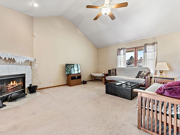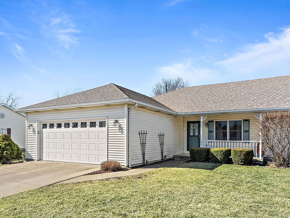 Spacious 2 Bedroom 2 Bath 1/2 Duplex! Welcoming front porch and so much curb appeal! Sizeable living room with vaulted ceilings and a wood burning fireplace. Kitchen has a breakfast bar and a perfectly sized dining space. Stylish updated ceramic tile back splash in the kitchen. Master bedroom comes complete with a full bathroom and walk in closet! 2nd bedroom also has a walk in closet! Both bedrooms also have tray ceilings that add dynamic design. 2.5 car attached garage. Great for extra storage!