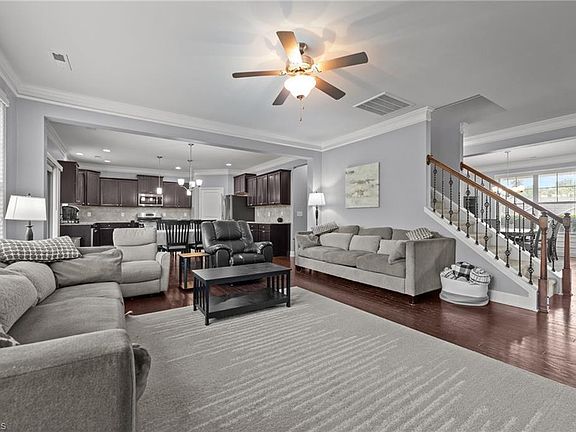 Welcome to this beautiful 5-bed, 4-bath home w/ huge bonus room, tucked in a peaceful cul-de-sac in Mackintosh on the Lake. 3,495 sqft, this home blends function and elegance. First floor offers an open layout, perfect for entertaining, plus a guest bedroom w/ full bath, dedicated office, & formal dining room w/ tray ceiling & wainscoting. Spacious eat-in kitchen features large island, granite counters, S/S appliances, & overlooks the living room w/ a cozy fireplace and large windows. Drop zone & laundry room add convenience. Upstairs, the primary suite boasts a spa-like bath w/ dble sinks, soaking tub, walk-in shower, & oversized closet. 3 more bedrooms, 2 full baths, & a large bonus room provide flexible living space. Enjoy the covered patio & generous backyard ideal for relaxing or entertaining. Resort-style amenities include a pool, splash pad, basketball, volleyball, tennis courts, miles of sidewalks, & planned community events for all ages!