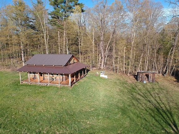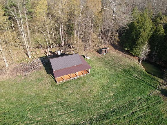 Beautiful post beam cabin with a 2 sided porch nestled on 32 acres of fertile bottom land. Enjoy water from the spring and food from the very fertile land. Home includes beautiful redesigned kitchen and circular stairs around tree. Private driveway.