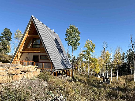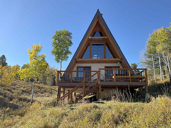 This beautiful A-frame cabin could be your cozy home or mountain retreat in beautiful Elk Meadows Estates. Nestled into the landscape the house features a deck for entertainment & watching wildlife go by. Inside has a modern wood stove for the winter months and an open floor plan with high wood ceilings connecting the kitchen, dining, living room and loft with big windows for natural light & views into the landscape. One bedroom and the large loft accommodate 4-6 people. 15 mins from Ridgway, 5 mins from multiple hiking & cross-country trails including National Forest access, 30 mins from Ouray and an hour from Telluride. It sits on one acre of beautiful mountain forest. Quiet enough to hear the elk and wildlife sounds from the surrounding area. Come see this beautiful mountain retreat!