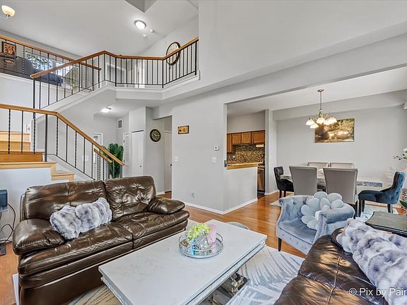 Charming End-Unit Townhome a well-designed 2-bedroom, 2.5-bathroom townhome offers approximately 1,332 square feet of comfortable living space in the popular Easton floor plan. Large windows throughout the home bring a bright, welcoming vibe that you'll love coming home to. The 2-story living room features a fireplace and flows nicely into the kitchen and dining area, making it easy to host friends and family. The kitchen comes equipped with granite countertops, a breakfast bar, and pantry storage to keep everything organized. Upstairs, you'll find a flexible loft area that works perfectly as a home office, reading nook, or kids' playroom. The primary bedroom is a comfortable retreat with vaulted ceilings, 2 closets, and its own private bathroom with a walk in shower. The large extended patio (2022) brings your living space outdoors and is perfect for morning coffee or weekend barbecues. Being an end unit means extra privacy and extra natural light. You'll have access to the community pool about a block away, and there's a golf course nearby for those who enjoy the game. The location offers a nice balance of peaceful residential living with convenient recreation options. This floor plan doesn't come available very often, so if you're looking for a comfortable home with good flow and nice outdoor space, this one's worth a look. Close to Army Trail and North Ave shopping and entertainment areas. Dont miss a great opportunity to own your own home.