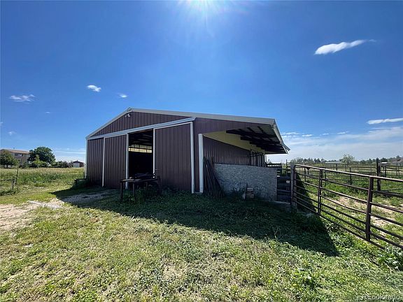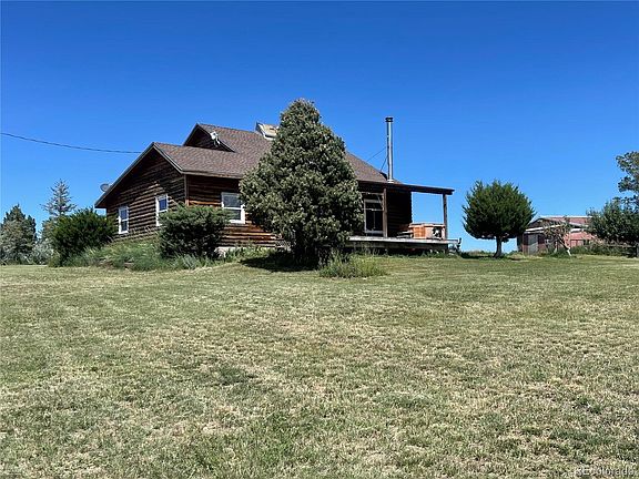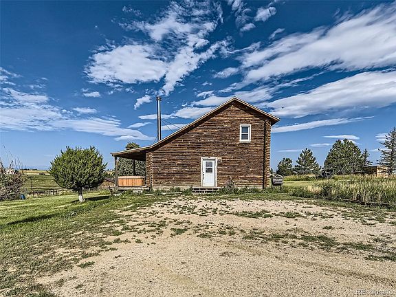 Step into a world of possibilities! Phenomenal opportunity to own a charming log cabin set atop 5 acres in peaceful Parker, CO. Log cabin has been lovingly owned by a single owner and it ready to be reimagined! 5 fenced acres of flat/gently sloped meadow boasts stunning panoramic mountain views and small pond in the rear. Imagine a large garden with organics fruits and vegetables blooming all summer. A fully equipped 1800 sqft., 3 stall barn is the perfect home for your horses, chickens, etc. As you step inside you'll no doubt be excited about the possibilities! The heart of this home is a cozy family room that opens to a welcoming front porch and majestic views. As you envision your loved ones gathered in this space, take note of the possibilities that the vaulted ceilings, charming pellet stove and traditional log walls hold. Imagine plush couches arranged strategically to make the most of the natural light, or a vintage rug that adds a touch of nostalgia to the room. The main level offers a world of possibilities for expanding the kitchen, creating a more spacious and modern layout. Three spacious bedrooms with large windows adorn the main level. Upstairs, a large loft is a wonderful space for a second gathering space, or could even be remodeled into a fantastic primary suite, thanks to the adjacent full bath and walk in closet. Don't miss the opportunity to breathe new life into this serene haven!