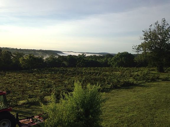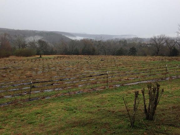 A unique prop located in one of the most picturesque little towns on the banks of the nationally renowned White River. 39 ac m/l of rolling Ozark Hill country, 2 ac m/l of which contain approx 1800 bushes of improved rows of quality blackberries consisting of approx 6 genotypes----Thorn less, Arapaho, Wichita, to name a few----that are capable of producing 9,000 to 10,000 gallon of fruit per year. Rustic 1,400 sq ft home has mostly hardwood floors throughout and lots of glass looking out over this orchard/farm and way beyond the White River valley---mountaintop views.