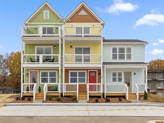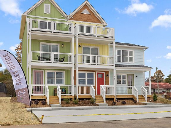 Welcome to Cielo Elevated Living, East Ridge's newest modern townhome community just 10 minutes to Downtown Chattanooga and walking distance to Parkridge East Hospital. This 3 bedroom, 2.5 bath B-Unit offers a bright, efficient layout with clean finishes, spacious living areas, and multiple outdoor spaces. The kitchen stands out with blue shaker cabinetry, white quartz countertops, a full matte-black herringbone backsplash, gold hardware, and a complete stainless Samsung appliance package—including the refrigerator. The open living area on the main level has light LVP floors, recessed lighting, and access to the first balcony. Upstairs, the primary suite includes a walk-in closet, modern lighting, and an upgraded bathroom with white quartz counters, double sinks, matte-black plumbing, and a tiled shower with contrasting white and charcoal tile. Two additional bedrooms share a clean, bright bathroom with matching blue cabinetry and gold accents. One of the standout features of this B-Unit is the third-level rooftop-style terrace, giving you a private outdoor space with open views—perfect for morning coffee or relaxing in the evenings. Additional highlights include smooth ceilings, energy-efficient construction, insulated windows, and professionally designed exterior color packages. These homes are not in a flood zone, investor-friendly, and open to mid-term rental opportunities. Seller is offering up to 3% toward buyer closing costs or upgrades with the preferred lender. Pricing for the 3 bed, 2.5 bath B-Unit starts at $325,000.