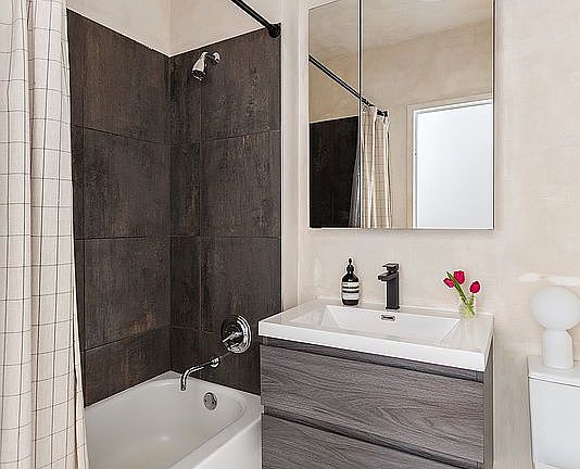 Welcome to Residence B106 at the Austin Nichols House. An impressive warehouse conversion on the Williamsburg waterfront. This spacious 1-bedroom, 1-bath home has been thoughtfully renovated, blending industrial character with modern design.