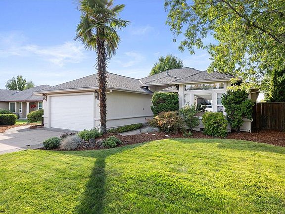 Discover this custom home located in the desirable Eagle Point Golf Community. With 1,660 SF of living space on a .21 acre lot, this 3BR, 2BA property offers a range of features, including an oversized two-car garage with a workbench & shelving, a primary bedroom with a walk-in shower, a gas fireplace in the living room, along with real hardwood floors in the living and dining areas. Matching tile flooring adorns the kitchen, both bathrooms, laundry room and the front entry. The home also boasts a newer roof, solar panels, forced-air heating, central cooling, and a covered backyard patio with in-ground sprinklers—all set against the backdrop of your very own tropical palm tree on a private peninsula neighborhood between multiple fairways. Enjoy living inside the spectacular 18 hole course created by renowned golf architect Robert Trent Jones Jr. Golf Digest has ranked EPGC as one of the top-15 ''Best Places to Play'' in Oregon, with fine dining and a full-service bar at the Talon Gril