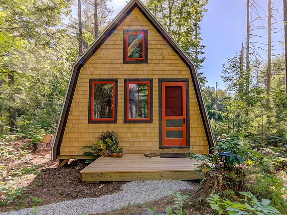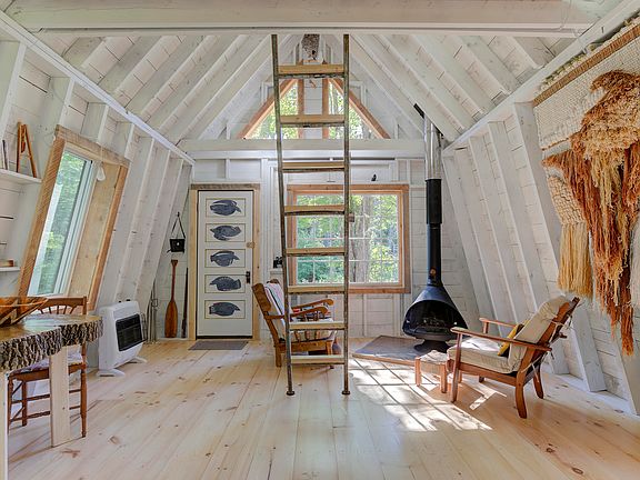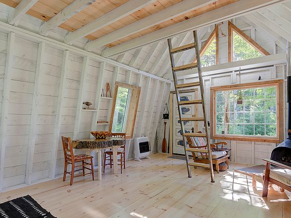 Looking for a little camp or seasonal rental? This updated A-frame seamlessly combines modern and rustic charm and is nicely settled on over 10 acres. Loving named Little Pine Cottage it offers an open concept kitchen/living area, light pine flooring and large windows with views of the stream and beaver bog. Upstairs in the loft you will fall in love with gazing at the stars as you drift off to sleep through its large skylight. Every detail in the cottage is hand picked and showcases its unique qualities from custom shelving, witty decor, handy kitchen setup and comfy pieces of furniture. Utilizing a basic but very effective solar setup enables lights, record player and charging area. The bathhouse/privy is located just steps away from the cottage and boasts a shower, compost toilet, sink and additional storage shed attached behind. There is also space to enjoy the outdoors on the front deck or backyard firepit area. Much time was spent creating several walking paths and seating areas across the boardwalk style bridge that will give its new owners or renters the peace and freedom to explore the land and discover the deer, turkeys, owls, fireflies and so many more little creatures that inhabit the area! Currently used as a short term rental. Sold furnished with a very well established rental history. Power is easily accessible to the new owner if preferred over solar.