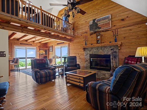 Looking for that private mountain retreat-here it is! Beautiful 3 bedroom 2.5 bath custom log home nestled away on 20.93 acres (other lots have great building sites) with walking trails, a pond, and plenty of wildlife to view. Screened front porch shaded for anytime of the day and the most breath taking view from the back deck that goes as far as the eye can see on a clear day. Open floor plan with granite countertops and plenty of room for entertaining. Home has a whole house gas generator, tankless gas hot water heater, water filtration system and gas log fireplace. There are two bedrooms on the main floor with a full bath and the master is on the upper level with a tiled shower and an open loft/office. The basement has a drive thru garage with workshop, half bath and storage area along with your laundry. This mountain estate is fully furnished and move in ready. Schedule your appointment today.