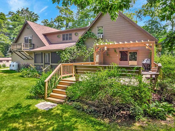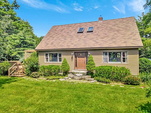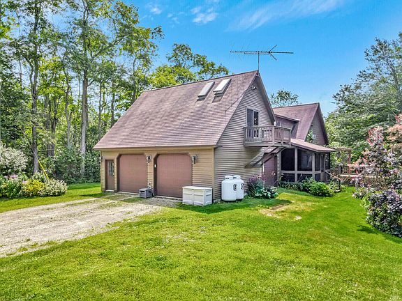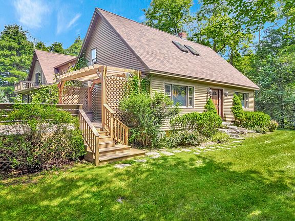 Welcome to an enchanting piece of history brought to modern life in the 90's - an exquisite pre-1800 home that sits on a 20-acre parcel. The original post and beam architecture is a testament to the craftsmanship and the renovations marry the home's original charm with the comfort of contemporary living. The first floor features a carefully crafted kitchen with modern appliances and a large pantry as well as a dedicated dining space with a wood burning stove and a bright living room. The first-floor bedroom and bathroom offer added convenience, ideal for guests or those seeking single-level living. You'll also find a firewood storage room, a half bathroom/laundry room and direct entry to the 2-car garage. Ascend the wooden staircase to the second level, where the lofted second living room is located and highlighted by the exposed beams that run throughout the home. There's another spacious bedroom with a private loft, the primary suite and a half bedroom which could be used as an office or hobby space. The primary suite has a private balcony overlooking the property. This home offers an open concept layout as well as extensive storage space throughout. Outside, the charm extends to the well-landscaped grounds which feature berry bushes, apple trees and scenic trails. A large private deck is located off the first floor living room and there's a screened-in sun porch as well. With its exposed beams, hardwood floors, skylights, and thoughtfully designed layout, this residence presents a rare opportunity to own a piece of history that has been lovingly cared for and enhanced for contemporary living.
