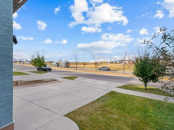 With green space right in front, scenic views from the upper bonus room, and the comfort of central air conditioning, this desirable Sage Hill two-storey offers it all. The open-concept main floor features a spacious living room with a sleek fireplace and a bright dining area — perfect for family gatherings or entertaining friends. The gourmet kitchen is equipped with quartz countertops, premium stainless-steel appliances, rich cabinetry, and a raised eating bar. Patio doors lead to an oversized, sun-drenched backyard with a large composite deck for summer lounging and BBQs. Upstairs, you’ll find a bonus room with sweeping views and an adjoining office nook — ideal for enjoying sunrise views while you work. The king-sized primary suite overlooks green space and includes a walk-in closet and private ensuite. Two additional spacious bedrooms complete the upper level. Recent upgrades include new Class 4 impact-resistant shingles (installed 3 months ago). This bright, stylish home enjoys an unbeatable location across from a future CBE K-5 school / multi-use park, just minutes from three playgrounds, a scenic pond pathway, Co-op, gyms, restaurants, major shopping, transit, and every neighbourhood convenience.