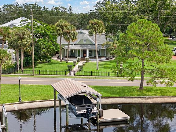 Welcome to the crown jewel of Tarpon Springs and an area of Spring Bayou known as the "Golden Crescent". Founded in 1887, Tarpon Springs is not short on history, character and beautiful historic homes! This home was barged down the coast from Vermont and features original heart of pine floors. If there was a blend between historic charm and modern features this home has it all. With three bedrooms, two baths, broad covered porches (both front and back), a chef's kitchen and tall ceilings, this home has a lot of space to live, host and entertain. Enjoy the spanning waterfront views from inside, or the oversized front porch where you may enjoy the Holiday Boat Parade, the Epiphany and various festivals that take place directly across Spring Bayou at Craig Park. On your private dock you have the convenience of solar power and water, a boat lift with a roof for shade and could come with the boat in place! Enjoy the screened in back porch and cabana area featuring a large salt water pool! Watch a football game, serve cocktails and cookout! The cabana has a half bath and there is also an outside shower. The back porch is pre plumbed for an outside kitchen. Store your boating gear or bikes in the detached shed. Tarpon Springs is a great place to live and hosts many festivals throughout the year and is home to gorgeous community beaches and waterfront parks. This property is a short stroll to everything including a thriving downtown with First Friday festivals monthly, coffee shops, breweries, boutiques, and fine dining as well as the world-famous Sponge Docks if you are interested in Greek cuisine and culture and an atmosphere found in the Grecian Isles. Additionally, this property has a large back yard with plenty of room for parking the toys. It's a quick 2-block walk to the Jolly Trolly that you can hop on and off any time to experience the highlights of downtown Palm Harbor, downtown Dunedin / TD Ballpark and Clearwater Beach. The home has been very well maintained. Please see attachments for an upgrade list. No HOAs.