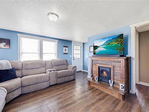 Inside, the home has been thoughtfully updated with comfort and efficiency in mind. Natural light fills each room, highlighting the fresh interior paint and cozy living spaces. The living room, centered around an electric fireplace mantel, becomes especially inviting during the holiday season. Recent improvements include a high-efficiency HVAC system and thermostat installed in May 2022, a new sump pump added in 2024, and a relocated gas line with updates completed in the summer of 2023.