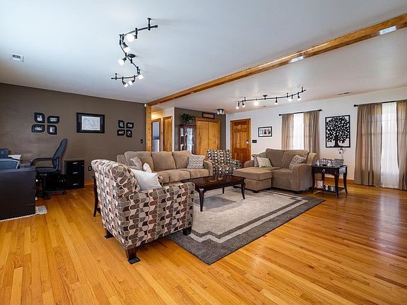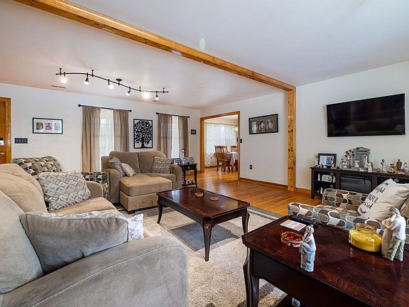 Spacious One Level Living, Well Cared For Home On Nearly An Acre, Hardwood Floors, Open Living Area, Large Primary Bedroom With Huge Walk In Closet, Large Basement With Finished Space, Home Security System, 3 Bay Detached Garage With Sink and Bath, Loft Area Above Garage Would Make A Great Workshop or Entertaining Area, Convenient To Shopping and Medical, Less than 10 minutes to the Interstate, Come Make This Your Home