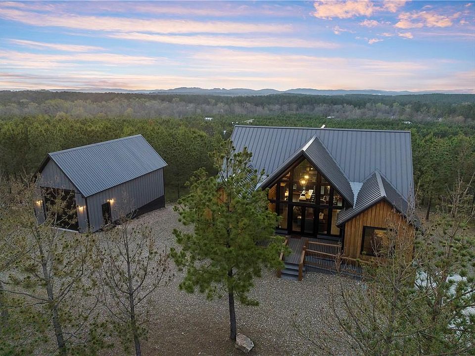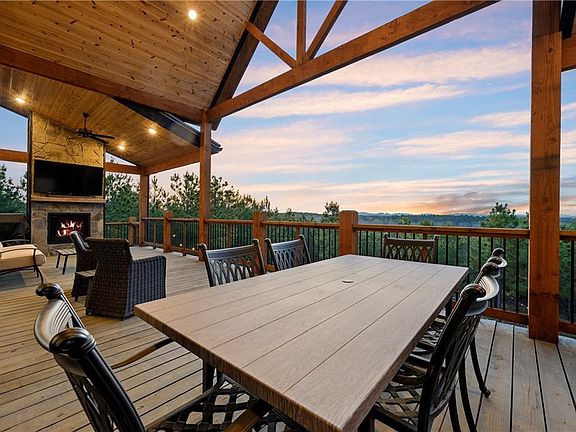 Long range mountain views welcome you into this stunning cabin perfectly perched on a panoramic view lot in the highly sought after Sunrise Ridge Development. Breathtaking sunrises in addition to the detached 20 x 40 garage perfect for boat, 4 wheeler or Jeep storage make this cabin a true gem! As you approach this property you will be wowed by the meticulous design and magnificent views that can be seen from the front doors of the cabin all the way through to the back deck. Complete with 3 bedrooms, 3 1/2 baths, and an extensive covered deck overlooking long range mountain views. Each bedroom features an ensuite bathroom with luxurious accommodations. The kitchen is complete with a large island, stainless steel appliances and granite counters. The exterior features an entertainment area, dining area, and hot tub section. Some of the many features include but are not limited to; wheelchair accessibility, RV hookup with electricity and water, large owners closet, paved roads!Call Today!