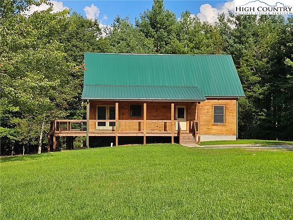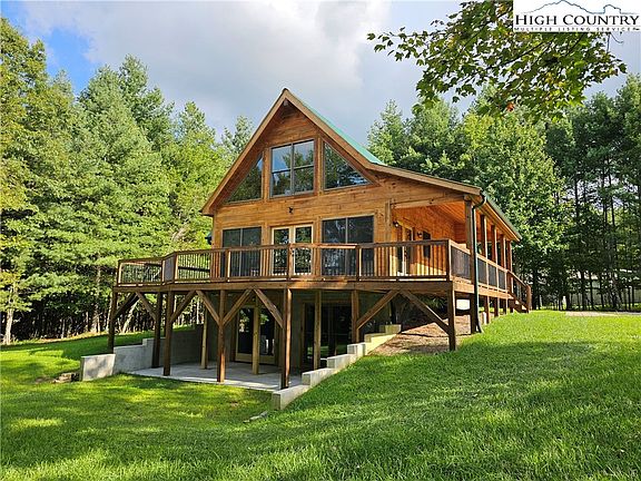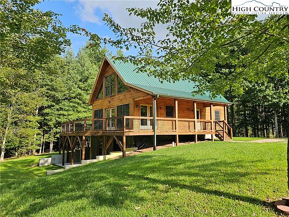 Experience mountain living at its finest in this nice Southland Log Home, situated on a level 2-acre lot in the heart of the Blue Ridge Mountains. This beautiful 2-bedroom, 2-bath cabin offers a full walk-out basement (unfinished and ready for your touch), and stunning cathedral ceilings with walls of glass that flood the home with natural light. The open-concept kitchen is both stylish and functional, featuring stainless steel appliances, granite countertops, and plenty of workspace. The main-level master suite is a true retreat with a walk-in shower, double vanity with granite countertops, and luxury vinyl plank flooring throughout. Upstairs, you’ll find an additional bedroom, full bath, and a comfortable sitting area. Step outside to enjoy the wrap-around porch-for soaking in the peaceful surroundings. With a heat pump, on-demand hot water heater, and room to expand in the basement, this home offers comfort and potential. Located in a quiet setting just minutes from the Blue Ridge Parkway and the town of Sparta, it has a nice blend of seclusion and convenience. Schedule your appointment today.