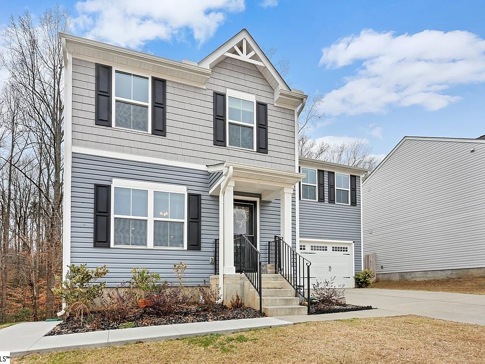 One of the highlights of this home is the finished walk-out basement with a full bath, kitchen cabinets, sink, refrigerator and stovetop that offers ample space for guests, teens or family. The basement has its own entrance and sidewalk from the front, ensuring privacy and convenience. This beautiful 4 bedroom, 3.5 bath house may be the perfect fit. As you step inside, the open floor plan greets you, offering a spacious and welcoming atmosphere that is perfect for spending time with loved ones. In addition, the private, tree-lined backyard provides a serene and peaceful retreat for relaxation or outdoor entertaining on the deck or patio with pergola. You will find plenty of storage space in the walk-in closets, pantry and 2 car garage. All appliances including both refrigerators, the stackable washer and dryer and the set upstairs will convey with the home. This house is move-in ready with LVP flooring throughout the main floor and basement. The large driveway is one of the biggest in the community, allowing for ample parking for you and your guests. Location is key, and this home is perfectly situated just a short distance to interstate access, BMW and GSP Airport and just a few steps from the community park. Don't miss the opportunity to make this house your home. Schedule a visit today to experience the warmth, comfort, and convenience this house has to offer!