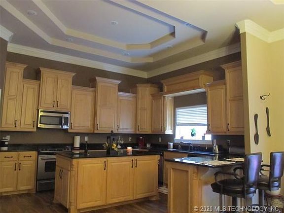 Beautiful 4 bedroom, 3 bath home on 1 acre with large shop. Located in the coveted Green Oaks Addition in Cartwright, OK. At just under 4000 sq. ft. this home offers many upgrades and amenities. The dream kitchen has 2 sinks, 2 stoves, 2 dishwashers & 2 microwaves with expansive cabinetry,granite countertops & a large pantry. There are 2 Stone Fireplaces in the home, 1 being in the cozy sequestered Master suite. Very private fenced backyard. Nice deck in back. 40x40 shop and water well. Perfect!