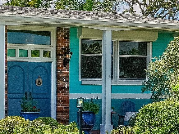 Quintessential charming beachside retreat perched high on a natural dune in a beloved coastal neighborhood! Just a short stroll to the sand! Enter from a welcoming front porch, perfect for sitting and listening to the waves. 3 bedrooms, 2 baths, real hardwood floors throughout, and beautiful solid wood cabinetry in the kitchen. The home is a lovely juxtaposition of updated and vintage features. Roof 2021, water heater 2020, updated electrical panel, electric storm shutters, and impact windows on the lower level. The full finished ground level is completely updated and has wood look ceramic tile flooring. It includes another full bath, with space to add bedrooms or use as a rec room or in-law suite, filled with light from newer impact windows.Enjoy the lush backyard oasis with native Florida landscaping, colorful flowers, a pavered patio, and a charming gazebo—perfect for relaxing or entertaining. Oversized 2-car garage provides extra storage for your beach gear. Great school district! Unbeatable Location: Only 8 homes from the beach with no high-rise obstructions