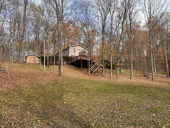 Great home on 4 acres, just minutes from Berkeley Springs, but in a nice and quiet setting. First level is the kitchen and dining area. This area has a laundry also and the home has central air. A large expansive rear deck with steps leading down to the bottom. Large yard with a circular shaped driveway. Upstairs area of the home has a large living room and 2 bedrooms and one full bath.