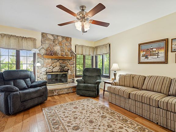 Be in before the Holidays. Very desirable location. Over 1800 sq ft this lovey two story has updated eat-in Kitchen with beautiful maple cabinets, granite counter tops, stainless steel appliances, recess lighting, pantry with slide out drawers, plenty of cabinets. First floor family room with floor to ceiling stone gas fireplace with logs. Great for the holiday season. Four spacious bedrooms up. Master bedroom with full bath and walk-in closet. Finished basement for extra entertaining. Concrete patio that over looks fully fenced yard with shed. Many updates include furnace, a/c in 2022. roof tear off in 2009, many newer windows, newer hot water tank. Larger ticket items been done...Great Value for this size home, come see for yourself.. Just a beautiful home!!!