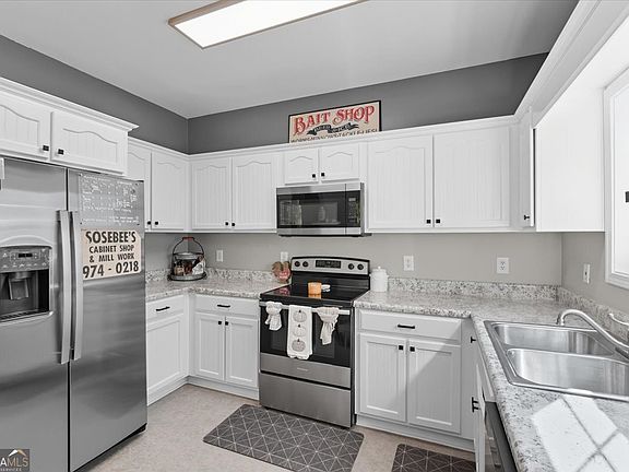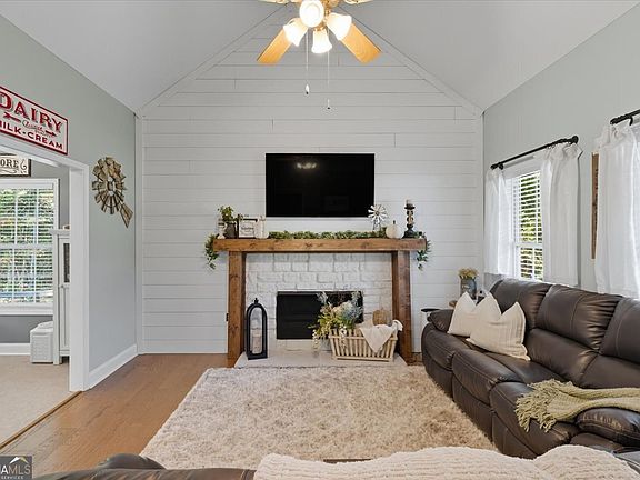 Fall in love with this charming ranch over basement home from the moment you step onto the covered porch and discover plenty of room for rocking and relaxing. Step inside and discover beautiful laminate floors, vaulted ceilings and a centerpiece fireplace with large cedar mantel and shiplap accent wall. There is a spacious kitchen with stainless steel appliances and eat in kitchen. Enjoy the covered deck just off the kitchen and notice your private backyard. The owner's suite is spacious with his and her closets, double vanity in the owner's bath and separate shower and tub. The secondary bedrooms are spacious, but what you will really love is the finished basement currently set up as a man cave. This space could also be an in-law suite or small apartment since it is already set up with a full bathroom and has an exterior exit. The garage is great if you are in need of extra space for your 4-wheeler, motorcycle, golf cart, or possibly a boat. It will fit 2 cars with room to spare and has high ceilings for your truck or van. There is also a workshop area. The driveway has extra parking pad and the fenced backyard features a double gate so you can drive your RV, trailer, or boat behind the fence to keep them safe. There is no HOA. This home is well cared for and many nearly new components such as a 2 year old metal roof. You will want to make this home yours