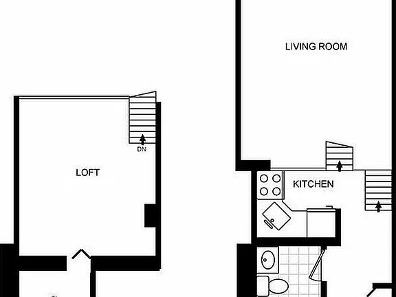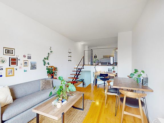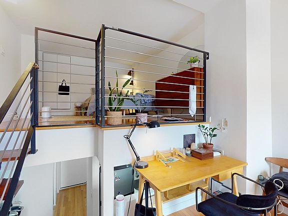 This bright, loft-style one-bedroom features high ceilings, a full standing-height sleeping loft, hardwood floors, and large windows that fill the space with natural light. Enjoy a separate kitchen, an updated bathroom, and laundry rooms on every floor.