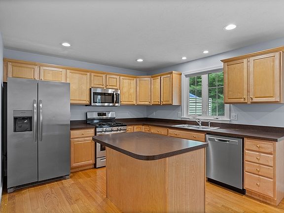 Move-in ready townhome with garage just minutes to Ayer Center, shopping, restaurants & commuter rail! Gleaming hardwood floors throughout. Main level offers a spacious living room, updated ½ bath, and kitchen with island & dining area opening to a 12×12 deck with privacy wall overlooking the yard. Upper level includes two generous size bedrooms. Also updated full bath with tub. Entry level features foyer, laundry, and direct-entry garage w/ Tesla charger & extra storage. Gas heat, central air, high owner occupancy & low condo fees—easy living at its best.