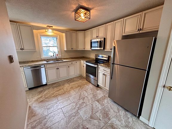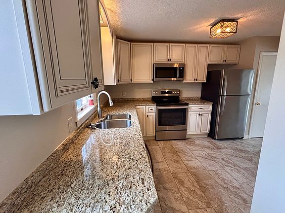 This home features granite countertops, stainless steel appliances including a dishwasher and microwave, updated cabinets, and laundry hook-ups in the unit.