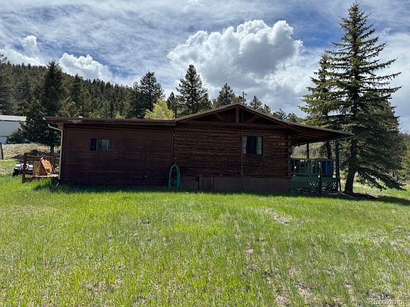 Rustic and quaint 2 bedroom log ranch on 1 flat, grassy acre just a few steps away from the National Forest. This charming cottage located in historic Shawnee Village has a covered front porch, wood burning fireplace, distant views of snow capped mountains, well and septic, owned propane tank, and an oversized detached garage. New roof on the garage 6/2024.