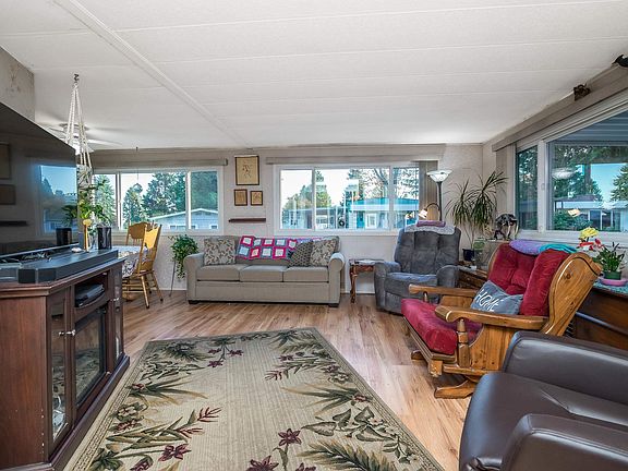 Welcome to Breakaway Bays A lovely community for families and retirees. This well cared for 1489 sq ft home. 2 Bed 2 Bath, (3rd Bdrm can be done), offers spacious living, Vinyl windows, new blinds throughout, 1 yr old heat pump, forced air and air conditioning, Gas stove, 5yr old water tank, 1yr old furnace, laminate floors throughout, attached wired workshop, large deck for entertaining, plexiglass greenhouse, 2 fridges, large bathrooms, close to all amenities, beach, schools, golf, shopping, transit, USA Border. Clubhouse has an outdoor heated pool, games room, library, lots of community activities in a very well run park. RV Parking available