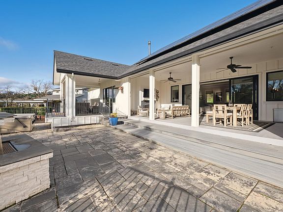 One-of-a-kind country property captures the essence of Sonoma County living you've been waiting for. Surrounded by sweeping Riebli Valley vineyard and pastoral views, this exceptional Santa Rosa estate presents a rare multi-home compound and horse property. Thoughtfully rebuilt, fully permitted & meticulously maintained spanning 6 fully fenced acres, it blends refined country living with versatility, privacy, and flexibility. The 2,460 sf main residence features 4 bedrooms and 3 1/2 baths with comfortable living space designed to take in the picturesque wine country setting. The 1-bedroom 1 bath ADU, well-appointed with modern flair - ideal for extended family, guests, or rental use. The spectacular fully-equipped outdoor kitchen with built-in BBQ, fridge, sink, cabinets, plus fireplace, fan and nearby hottub creates an exceptional setting for effortless indoor-outdoor living. Above the huge barn/ workshop, a charming guest house with full bathroom provides additional flexibility and living space. Equestrian amenities include facilities for up to five horses with a tack room and hay barn. The land is equally productive, with two orchard acres featuring 65 fruit trees, table grape vines, & blackberry vines and raised beds. Additional highlights include covered RV storage with full hookups, fully-owned solar, backup generators, individual septic systems and propane tanks for each residence, and infrastructure designed for modern country living. This is a rare offering where vineyard views, open land, and a thoughtfully designed compound come together to create an idyllic retreat.
