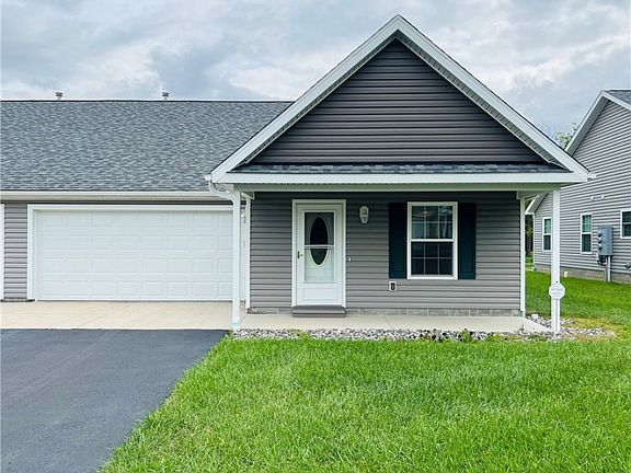 Exceptional Quality explains this 3 Bedroom, 2 Bath Ranch Style Premium 2021 Built Condo! Open Eat-In-Kitchen offers Bright and Airy Feeling, offers Gray Cabinets (with some pull-outs) Laminate Countertops, Gorgeous slate mixed/textured backsplash, Ambiant lighting above cabinets, Newer (2021-2024) Stainless-Steel Appliances & Farmhouse Sink to Boot! Open Living Room with Luxury Vinyl Tile Flooring, Light Painted Walls throughout! Down the Hallway to Guest Bath with shower/tub combo! Conveniently located Laundry Room/ Utility which includes added Gray Cabinets, GE Washer/Dryer Combo unit all in One! Master Bedroom w/Large closets, Ensuite Bathroom with Walk in shower! 2 More nicely sized Bedrooms (One with updated Picture Window overlooking the Beautiful Pond out back and all that Nature has to offer! Attached 2 Car Garage with shelving that stays, and a "GENERAC GENERATOR" as a BONUS! Newly Paved roadway on Alexander Dr and driveways too! Close in proximity to SPIRE and Route 90 Freeway! Make an appt today!