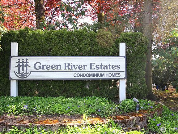 Beautifully updated, move-in ready 1 bed/1 bath condo in highly desirable Green River Estates, right in the heart of Kent! Ground floor convenience meets modern living with bright, open layout flooded with natural light and private patio access to serene garden courtyard. Enjoy newly updated fireplace for cozy evenings, fresh interior paint throughout, brand new vinyl flooring and LED lighting. Spacious walk-in closet, in-unit washer/dryer, and assigned parking just outside the unit. Conveniently located near highways, shopping, dining, and entertainment. Perfect for first-time buyers or savvy investors! Don't miss this opportunity!