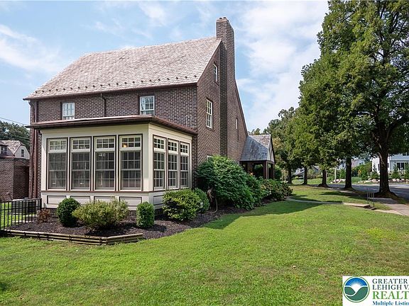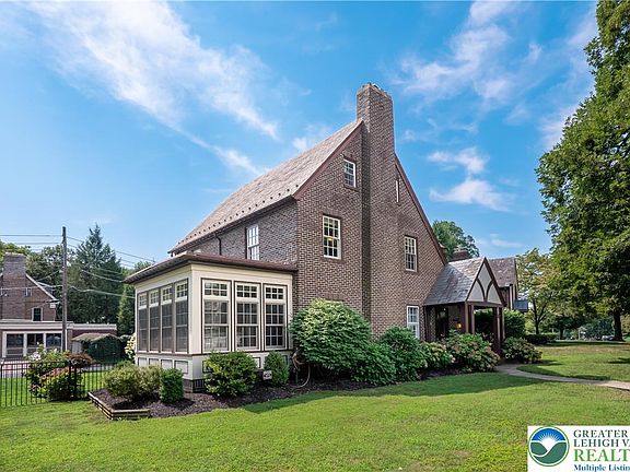 Welcome to 1840 Easton Ave in Bethlehem! This beautiful Tudor home, set on a charming tree-lined street, exudes classic character with its stately brick exterior. Step inside to find 5 bedrooms, 2 full bathrooms, and 2 half bathrooms, offering ample space for living and entertaining. The large eat-in kitchen features built-in seating, a central island with a beverage refrigerator, and hardwood floors that carry through the home. The spacious living room, complete with a cozy fireplace, opens to a formal dining room through elegant French doors—a perfect layout for gatherings. An inviting four-season room can serve as a den, study, office, or library, providing versatile space for any need. On the second floor, you’ll find three generous bedrooms and a full bath, while the third floor hosts two additional bedrooms with newly installed egress windows, a full bath, and a walk-in cedar closet. The partially finished lower level includes a family room, laundry facilities, and a convenient powder room. Outside, a fenced-in backyard with a concrete patio creates a welcoming space for outdoor relaxation and entertaining. A detached 2-car garage adds convenience and storage options. This fabulous home blends timeless charm with functional spaces. Schedule your private showing today and make it yours!