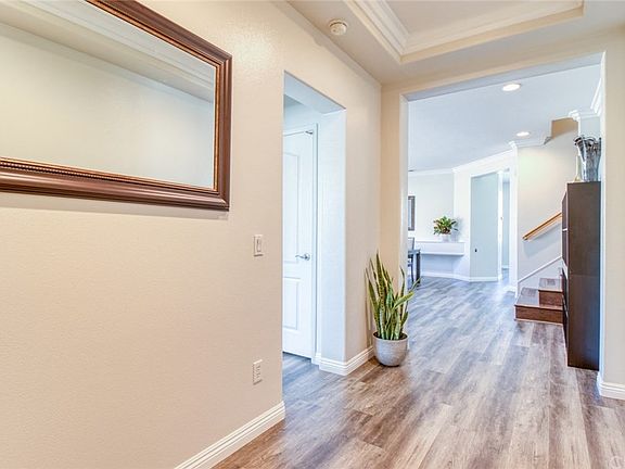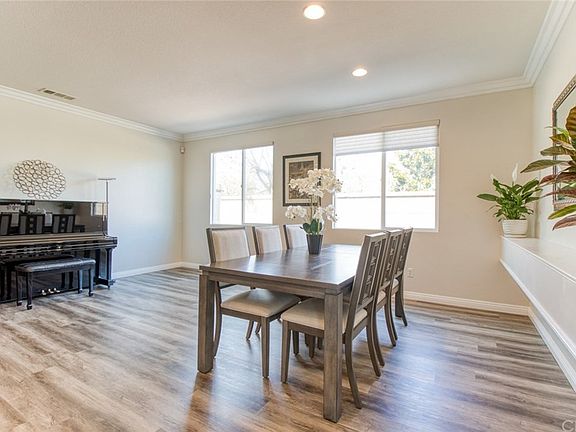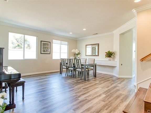 A TURNKEY HOME located in the DESIRABLE CHANTRELLE neighborhood of the prestigious COLONIES. WELCOME HOME to this spacious 5 BED, 4 FULL BATH and 3,100 sq ft of OPEN FLOORPLAN. Formal entry invites you into a large living and dining room, family room that opens to the large kitchen with island, Maple wood cabinets, gas stove with downdraft ventilation, granite countertops and glass tile backsplash, double wall oven, walk-in pantry, and kitchen eating area. ONE BED AND ONE BATH LOCATED DOWNSTAIRS. Upstairs you will find a spacious master suite, master bathroom with dual sink vanity, separate shower, spa tub and amazing WALK-IN CLOSET with built-in shelves. There is also three additional bedrooms, a Jack and Jill bathroom, an additional full bathroom and built-in hallway tech/desk area. This stunning upgraded home has new paint, new flooring, newer AC unit and water heater. Laundry room with tons of storage is conveniently located upstairs. Beautifully landscaped backyard with a raised custom concrete patio surrounded by grass and fruit trees is great for entertaining and a community walking trail behind it! An oversized two-car garage with ample storage and is conveniently close to trail, shopping, restaurants, and freeways.