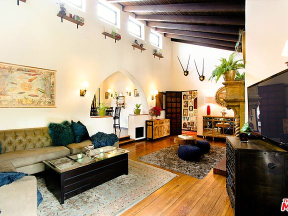 Live the dream in El Cabrillo, an exquisite & uniquely enviable combination of charm, history, privacy & detail. This historic Spanish Colonial Revival courtyard complex designed by Arthur & Nina Zwebell & built in 1927 by movie mogul Cecil B. Demille. 1840 features 15' beamed ceilings, clerestory windows & a gas wood burning fireplace. Top story, 2 balconies with french doors, views west of courtyard and east of the Hollywood Hills & The Observatory. Thick plaster walls, lovely old hardwood floors, hand painted tile, detailed moldings & authentic ironwork imbue the space with the romance of a bygone era of grace and craftsmanship. Updated modern conveniences, central HVAC, camouflaged dishwasher & refrigerator, stackable washer/dryer in unit, and deeded on-site garage parking. LA Historic-Cultural Monument. Low HOA dues and Mills Act tax relief mean significant reduction in ownership expenses. Walking distance to Hollywood Bowl, Farmer's Market, TJ's, Runyon Canyon, shops & more!