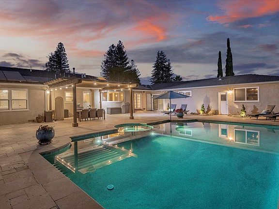 Spacious, light filled, renovated home. Northeast facing on a large 17,296 SF corner lot. This home includes 5 oversized bedrooms, plus 2 smaller bonus rooms (combined can be used as a generous size office or exercise room) 3 full baths. The gourmet kitchen features a gas stove, stainless steel appliances, granite counters, skylight, and large dual pane windows looking out to private backyard. Professionally landscaped backyard in 2018 includes a saltwater pool, spa, gas fire pit, and travertine stone tile patio, and an area ready to build an outdoor kitchen. This beautiful home has ample space including a dining area, living room, and large family room, 2-car garage with extra off street parking. Eco friendly upgrades, dual nest thermostats, solar panels and AC. Fabulous location with easy commute routes, walk to Montclaire Elementary, neighborhood shops, restaurants and close to top ranked schools.