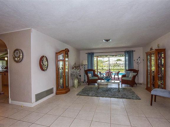 This custom lakefront pool home with sunny Southeastern exposure is loaded with possibilities. Built by Lincoln Homes, the split floor plan layout was designed to showcase over 140 feet of frontage on Heritage Lake. A double leaded glass entry opens to a tiled living area (laminate in the bedrooms) and views of the water, lanai and sparkling pool (refinished in 2016). Beautifully appointed kitchen with Kraftmaid glazed linen soft-close cabinetry topped in granite is the perfect place to gather and prepare your favorite dishes. A sizable great room is adjacent to the kitchen with vaulted ceilings and a wall of sliders to over 350 square feet of covered lanai seamlessly blending the indoor and outdoor living areas. The master bedroom is also generously sized with another set of sliders overlooking the view, his & hers walk in closets and an en-suite with dual sinks & walk-in shower. Need extra space? The oversized 2-car garage has plenty of room for a workshop and extra storage. For peace of mind the home plumbing has been re-piped and the AC was replaced in 2018. Home has an original tile roof from 1983, which requires replacement. Guest/pool bathroom renovations are incomplete but ready for you to make your own design choices. With a highly desirable layout and excellent location the potential of this property far outweighs its imperfections.