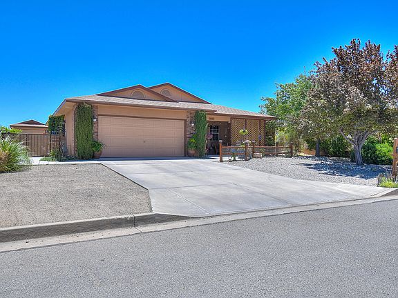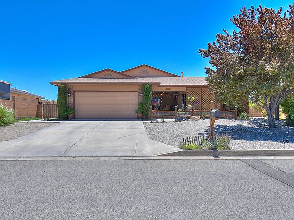 Dont miss out on this amazing home in Park West in Rio Rancho. This home features 1659 sq. ft 3 bedroom, 2 baths, a full 2 car garage PLUS a detached single car garage in the back! This remodeled home features updated windows, refrigerated air, and updated lighting. Kitchen features oak cabinets with plenty of storage and built-in pantry and tile backsplash. Kitchen opens to breakfast nook with bay window and full dining with sliding glass door to the well manicured backyard. Great room is finished with laminate wood floor and fireplace. The Master Suite features 2 big closets and a updated Master Bathroom with separate soaking tub and shower! Custom Vanity with split mirrors and low level lighting. Close to shopping, dining and the movie theater. Great Location in central Rio Rancho.