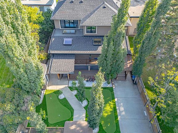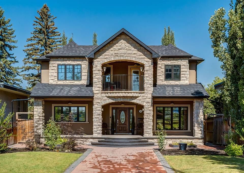 This extraordinary custom estate offers over 5,200 sq. ft. of total living space, situated on a massive 179' deep lot, plus more than 1,100 sq. ft. of covered outdoor areas, all with sweeping views of the Bow River and downtown skyline. From the foyer, the craftsmanship is immediately evident with over 8,000 board feet of maple millwork, solid maple doors, Brazilian walnut floors, and exotic hardwoods such as tiger wood, bird’s-eye maple, ebony, kaiju, walnut, and cherry, all installed by master artisans. The main floor offers a front-facing primary bedroom with a private ensuite with jetted shower and tub, and in-floor heat. A formal dining space or office, and a showpiece kitchen appointed with a Wolf gas range, Sub-Zero fridge, Bosch dishwasher, walk-in pantry, curved cabinetry, beveled granite counters, and a custom removable island table. The adjoining living room is anchored by a fireplace and opens seamlessly to expansive covered decks with cedar ceilings and stamped concrete, creating year-round indoor-outdoor living. Upstairs, four bedrooms include two full primary suites with fireplaces and spa-inspired ensuites, while the main retreat enjoys a sitting area, walk-in closet, heated floors, jetted tub, and steam shower. Another primary bedroom with an ensuite, two additional beds with a jack-and-jill bath, one with a built-in fireplace, a wet bar, which leads out to the balcony with skyline views, and a laundry room complete the second level. The fully developed walk-out/walk-up basement offers a recreation room, kitchenette, two more bedrooms, and two bathrooms, all warmed by in-floor heating with direct access to covered patios. Outside, six distinct decks and patios surround the real-stone exterior, complemented by a finished four-car garage with skylights, a 66’ RV pad, stamped-concrete driveway, and rear alley access with space for lots of vehicles. Recent upgrades include a new roof, downspouts, custom putting green landscaping, and central A/C (2025), while a pre-poured foundation provides a ready-to-build addition (with city of Calgary Permit Approval). Surrounded by multi-million-dollar homes and set directly across from downtown Calgary, this rare riverfront property combines artisanal detail, scale, and location in a way that defines luxury living. Nestled just steps away from parks, trendy restaurants, and bars, this residence provides a serene escape in the vibrant Kensington district. Its proximity to the Bow River, downtown, the University of Calgary, SAIT, and Foothills Hospital makes it ideal. With easy access to Memorial Drive and Crowchild Trail, this is your opportunity to call this magnificent property your own. Don't hesitate to call today!