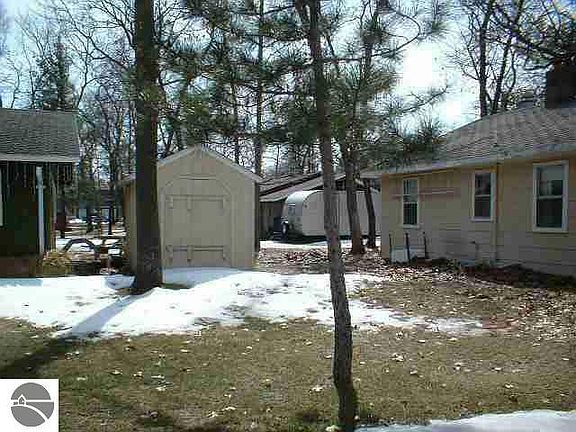 two bedrooms-cute cottage or home on corner lot close to all the inland lakes open living/kitchen- living rm w/ FP small storage shed.