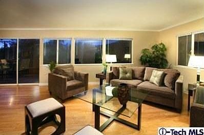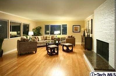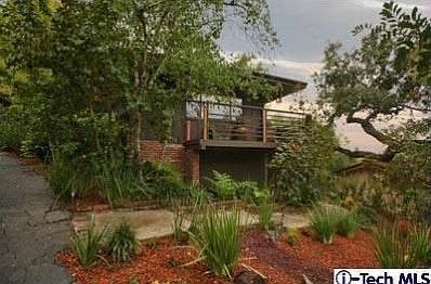 This unique home sits on a large lot in an abundantly landscaped setting. It truly feels like a private hidden retreat when one pulls into the circular drive. Tucked behind graceful oaks you will find a two car garage with a guest house above designed by architect Claire Earl. This guest house and the main home are surrounded by lush shrubbery, a fish pond, garden areas and a peaceful fountain that creates a focal point for the front yard. The Mid-Century main home features classic detailing throughout, clean architectural lines, built in storage in the dining area and a built in wine rack in the kitchen. In addition to the 3 bedrooms, living room and dining area, there is an attractive kitchen and breakfast area that look out to the soothing grounds. Large windows across this main floor allow for views of city lights, tree tops and the foothills.