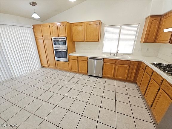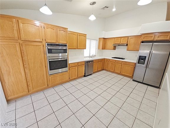 Double gas ovenGas cooktopWalk-in closetMedia nicheStainless steel refrigeratorCeiling fan