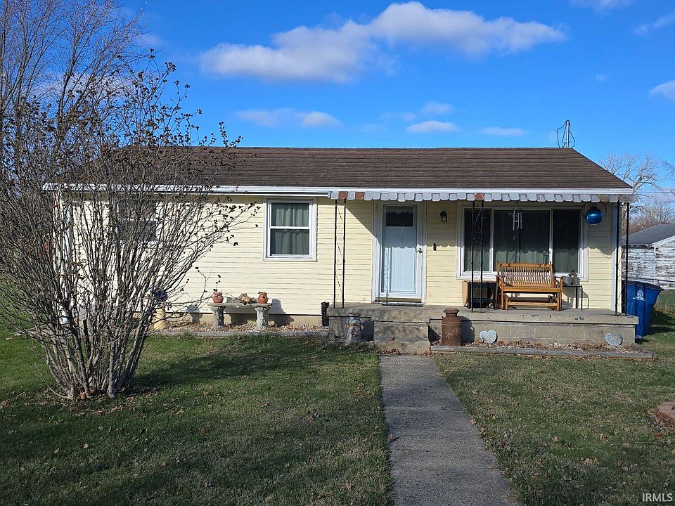 This cute two-bedroom bungalow features a low-maintenance exterior. The backyard has a nice garage, a white picket fence, and a storage shed. The home has two large living spaces. The kitchen has been updated with new cabinets, counters, faucets, flooring, and an updated gas stove, refrigerator, and microwave. The roof looks like shingles but is a metal roof. The furnace and central air were updated in 2023. A new water heater was installed in 2024.